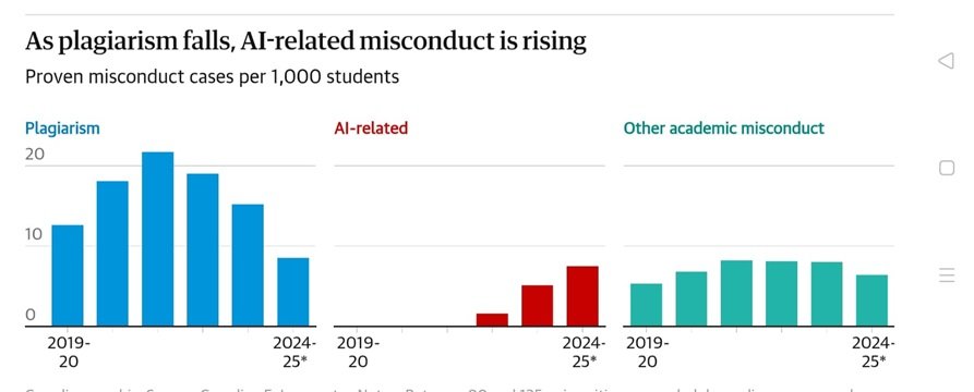 Di sisi lain, bentuk plagiarisme konvensional justru menurun drastis, dari 19 per 1.000 mahasiswa (2019–2020) menjadi hanya 8,5 menurut prediksi tahun ini. - AI Sulit Dideteksi, Mudah Dimanipulasi