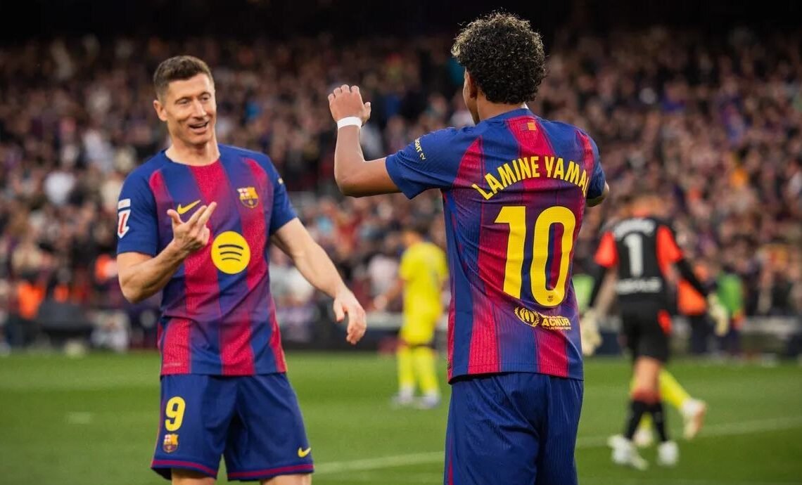 Barcelona, Spanyol – Lamine Yamal resmi mencetak hat-trick profesional pertamanya, membawa FC Barcelona melumat Villarreal 4-1.