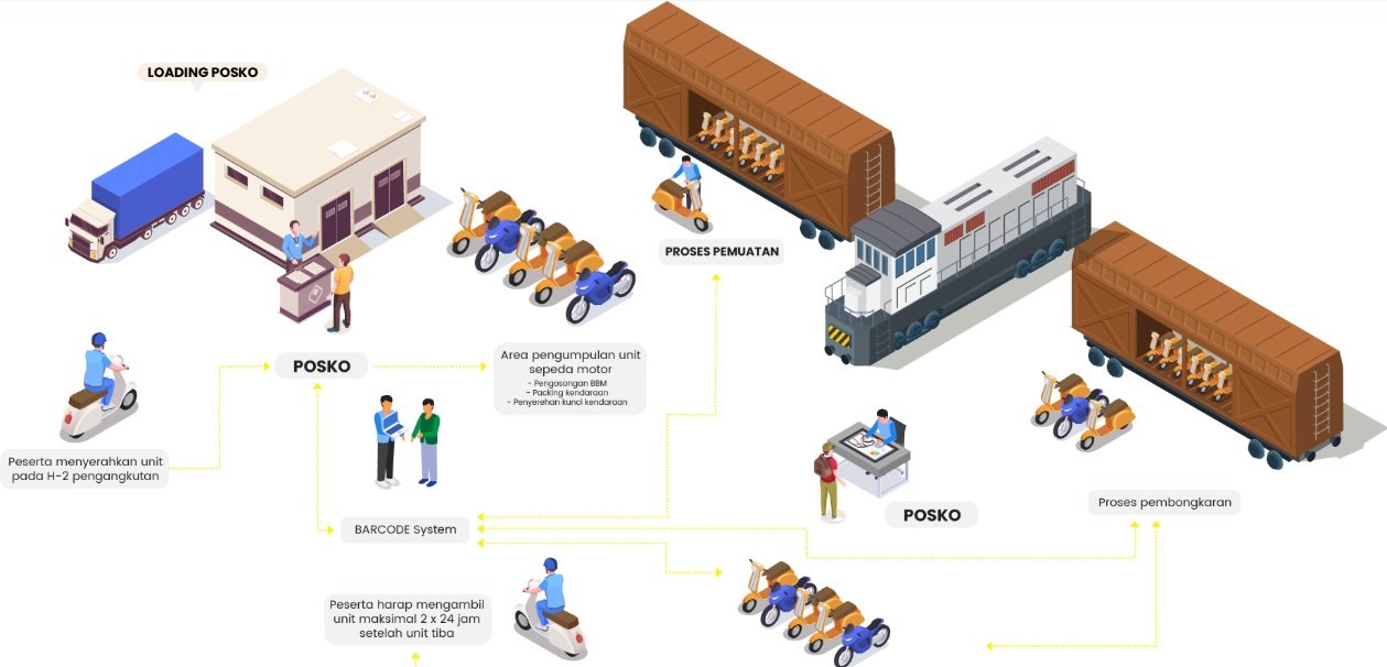 Setelah mendaftar, pemudik tinggal menyesuaikan jadwal pengangkutan motor yang dibagi menjadi dua fase:
