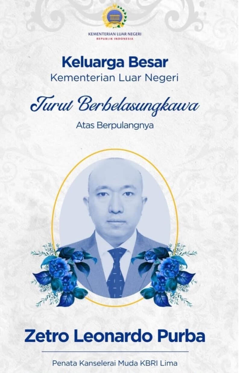 Lima, Peru – Kabar duka menyelimuti korps diplomatik Indonesia, setelah seorang Diplomat Kementerian Luar Negeri, Zetro Leonardo Purba, tewas ditembak di Distrik Lince, Lima, Peru.