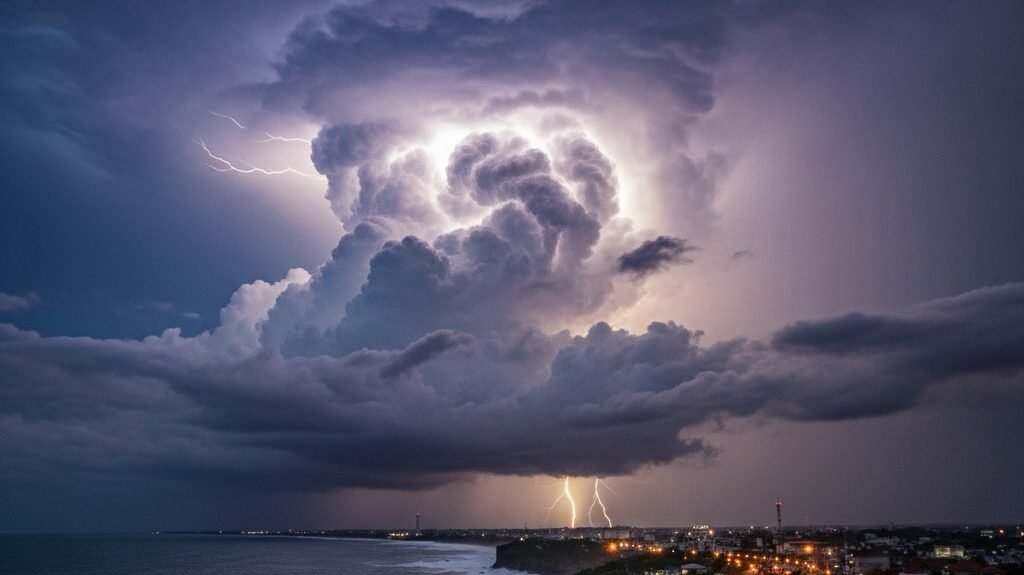 Kombinasi dinamika atmosfer yang bergerak liar memicu pertumbuhan awan hujan raksasa, yang siap mengguyur bumi dengan intensitas sedang hingga sangat lebat, disertai ancaman petir dan angin kencang.