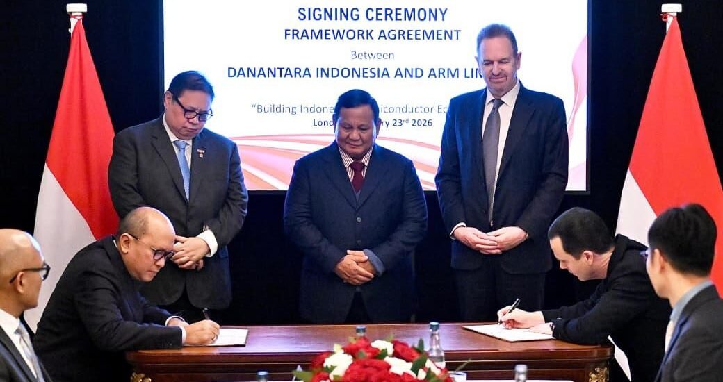 London,Inggris – Presiden Republik Indonesia Prabowo Subianto menyaksikan momen bersejarah penandatanganan perjanjian kerangka kerja antara Badan Pengelola Investasi (BPI) Danantara dan raksasa teknologi Arm Limited di London, Inggris, pada Senin (23/02/2026).