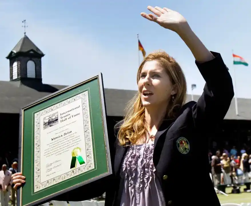 Monica Seles, melambaikan tangan usai menjadi Anggota International Tennis Hall of Fame, 2009 – Foto: Dok AP Sport