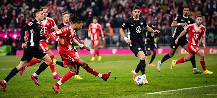 - 5’: Umpan silang Luis Diaz, yang ditujukan kepada Michael Olise, justru disambar terlebih dahulu oleh bek Wolfsburg, Killian Fischer.