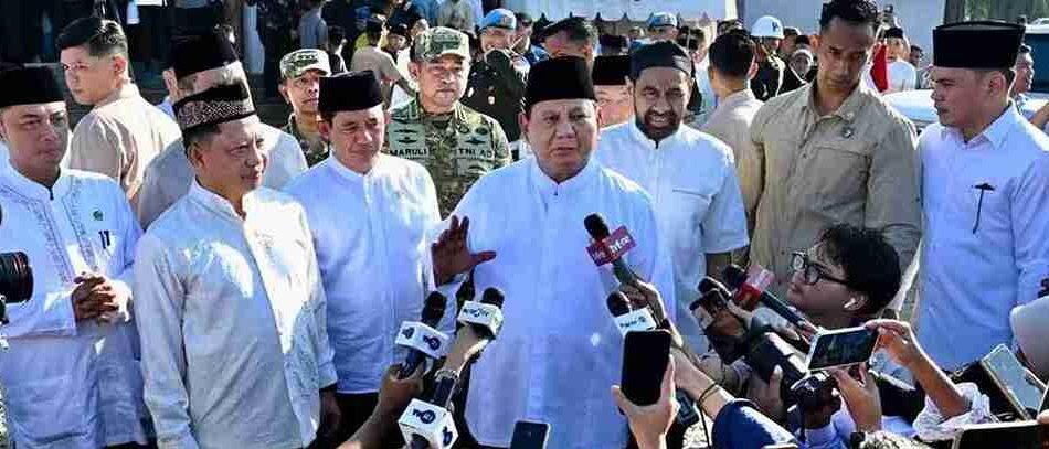 Usai mendengar curhatan warga, Presiden Prabowo menyempatkan diri menyapa awak media di area Masjid Darussalam.