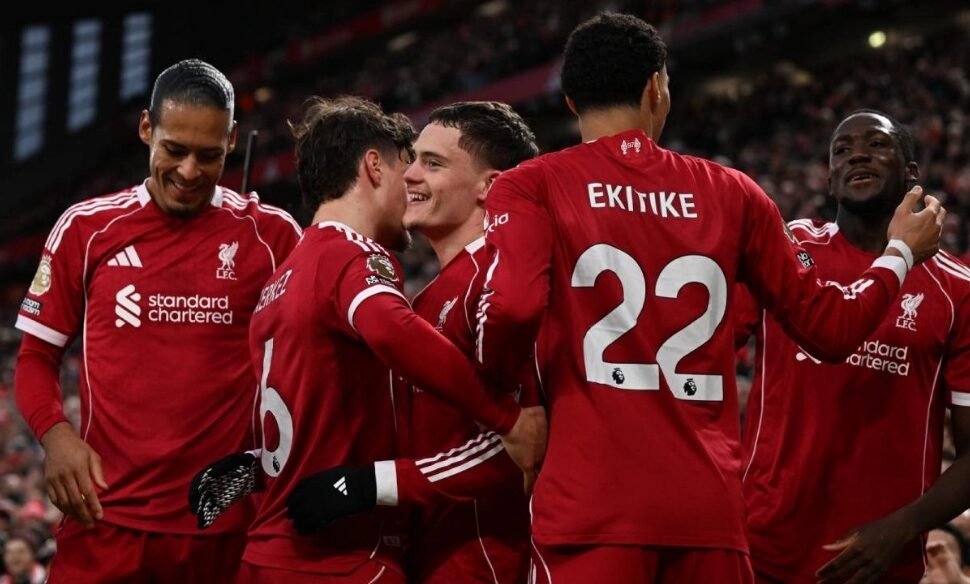 - 42’: Dalam sekilas mata, keunggulan The Reds melebar menjadi 2-0. Dengan gerakan lincah, Hugo Ekitike melewati pengawalnya dan lalu memberi bola kepada Florian Wirtz, yang sukses mengalahkan kiper Jose Sa.