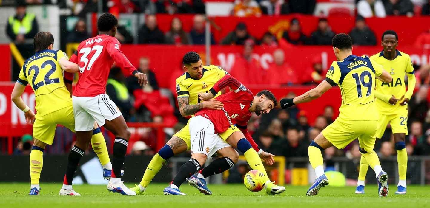 Hanya butuh 30 detik bagi United untuk mengancam gawang Guglielmo Vicario, lewat akselerasi Mbeumo. Dominasi United di lini tengah yang dikomandoi Casemiro membuat Spurs kesulitan mengembangkan permainan.