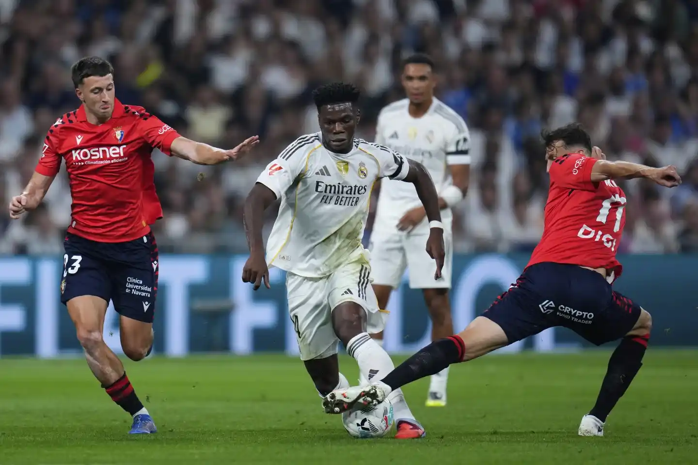 Madrid tampil dominan dengan penguasaan bola mencapai lebih dari 70 persen, meski kesulitan menembus rapatnya pertahanan Osasuna di babak pertama.