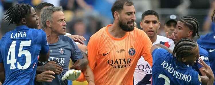 Enrique terlihat mendorong Pedro yang dikelilingi oleh pemain PSG yang frustrasi dengan kekalahan mereka. Pemain dan pelatih dari kedua kubu pun sempat terlibat dalam konfrontasi keras sebelum akhirnya dipisahkan.