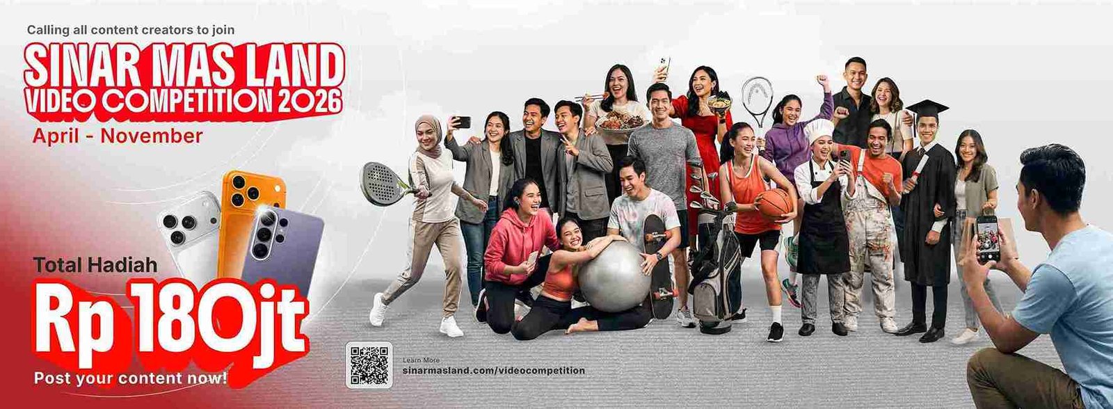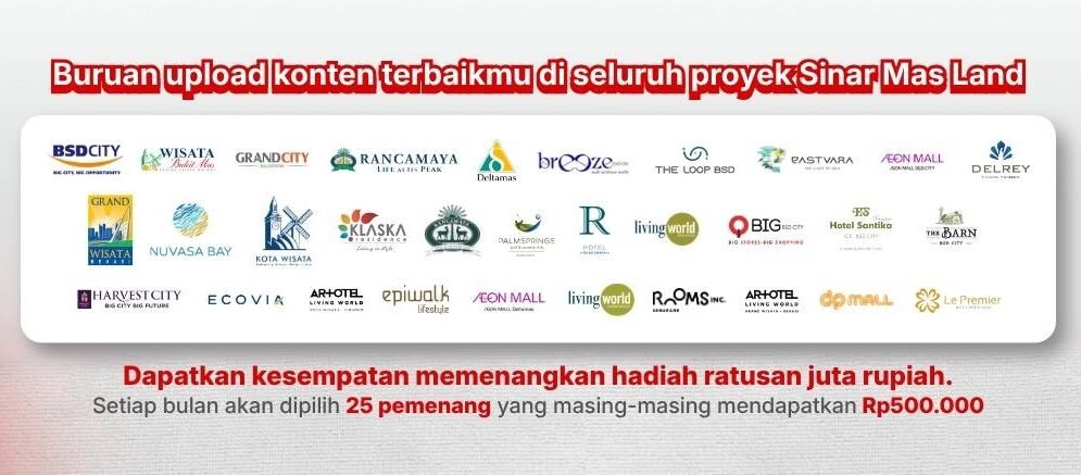 Mengangkat tema besar “Always Alive with Sinar Mas Land”, raksasa properti ini tak tanggung-tanggung menyiapkan total hadiah senilai Rp 180 Juta, untuk menjaring kreativitas kreator konten dari seluruh penjuru Indonesia.