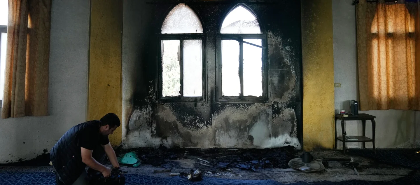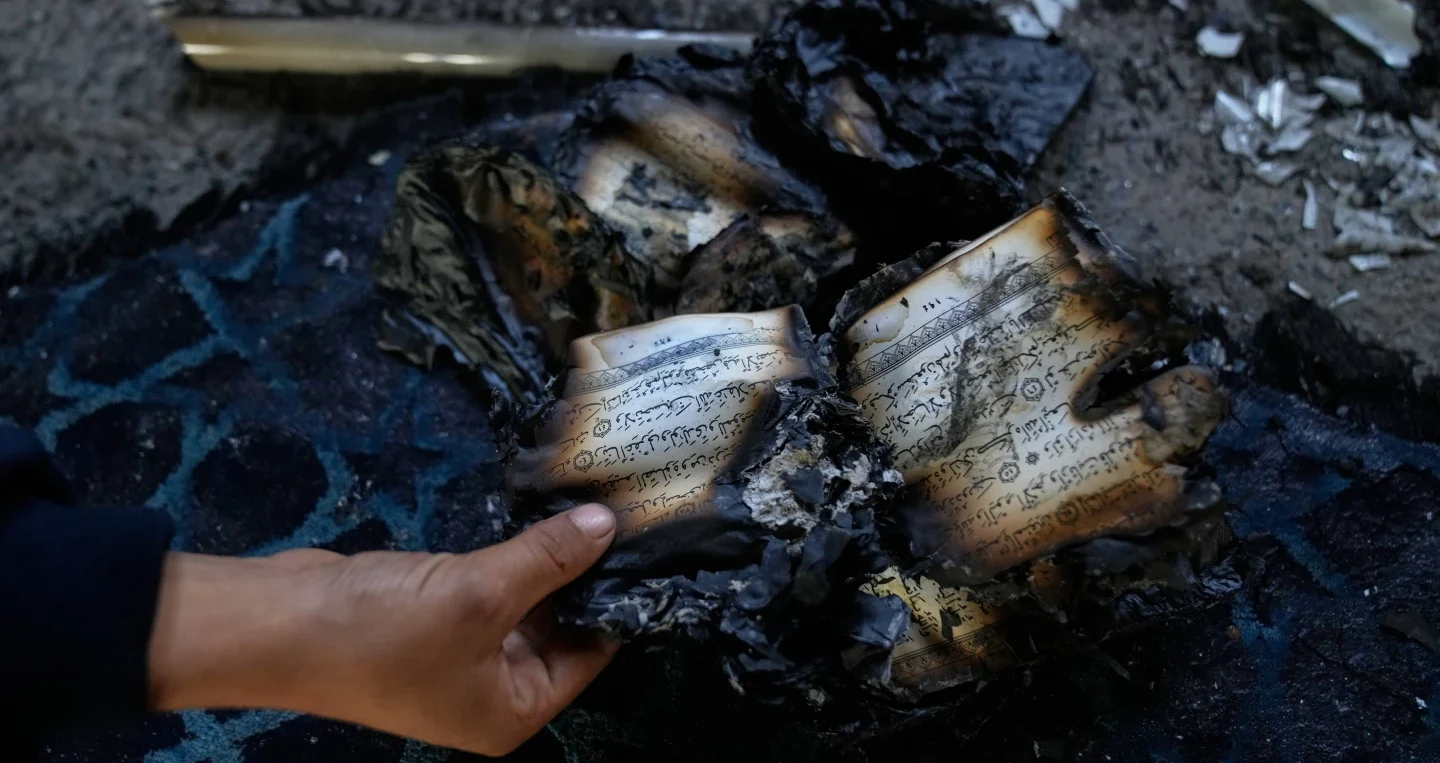 Berdasrkan pantauan Associated Press di tempat kejadian, terlihat setidaknya tiga salinan Al-Quran, dan sebagian karpet masjid di kota Deir Istiya, Palestina, telah dibakar.