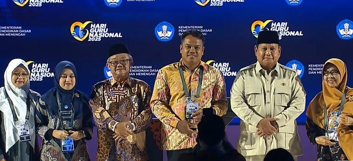 Dalam momen puncak HGN 2025, Presiden Prabowo didampingi Mendikdasmen Abdul Mu’ti menyerahkan Anugerah Guru Indonesia 2025 kepada tiga sosok pendidik inspiratif.