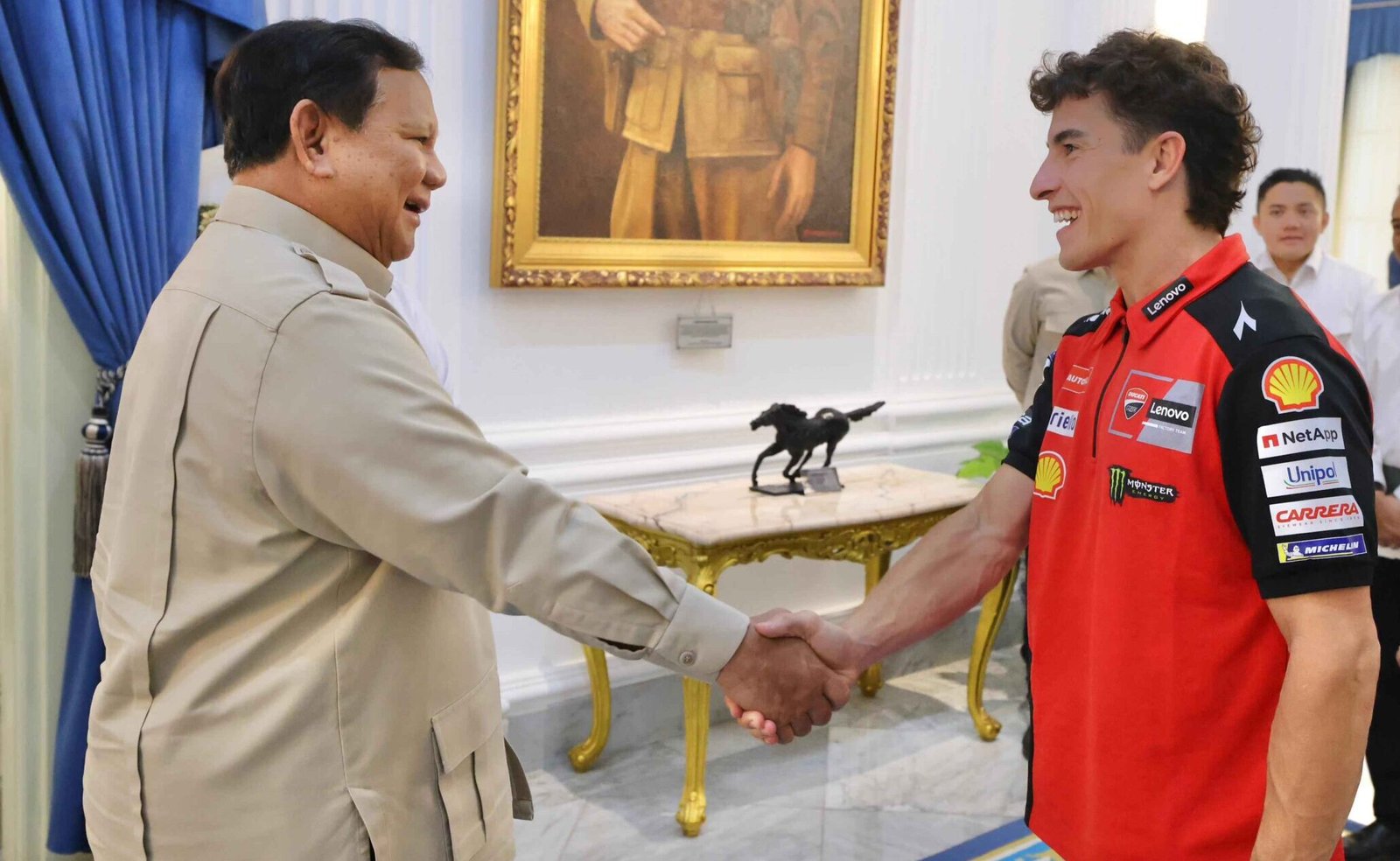 Jakarta – Presiden Prabowo Subianto menerima kunjungan istimewa dari sang Juara Dunia MotoGP, Marc Marquez.