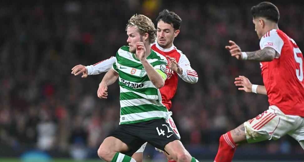Sporting CP tampil luar biasa sepanjang 180 menit, bahkan nyaris memaksa laga berlanjut ke babak tambahan andai tendangan voli Geny Catamo tidak membentur tiang gawang di akhir babak pertama.