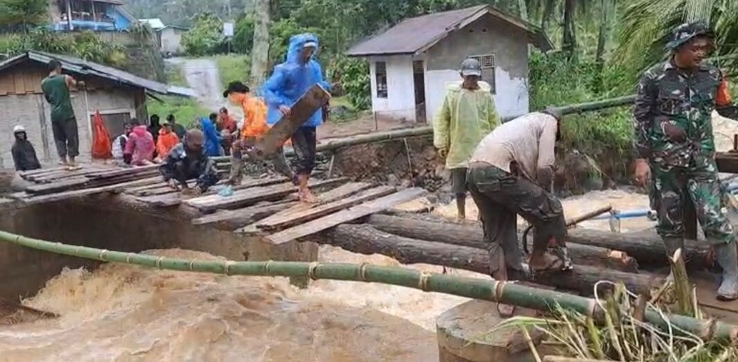 Warga memperbaiki jembatan terputus akibat terseret banjir – Foto: Dok. BNPB Sumatra Barat