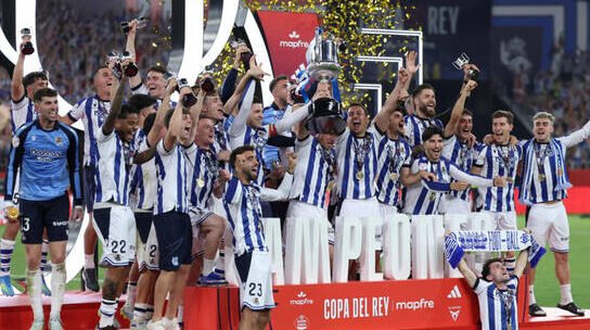 Real Sociedad resmi dinobatkan sebagai juara Copa del Rey untuk keempat kalinya setelah menumbangkan Atletico Madrid melalui drama adu penalti yang mendebarkan di Stadion La Cartuja, Minggu (19/04/26) dinihari.