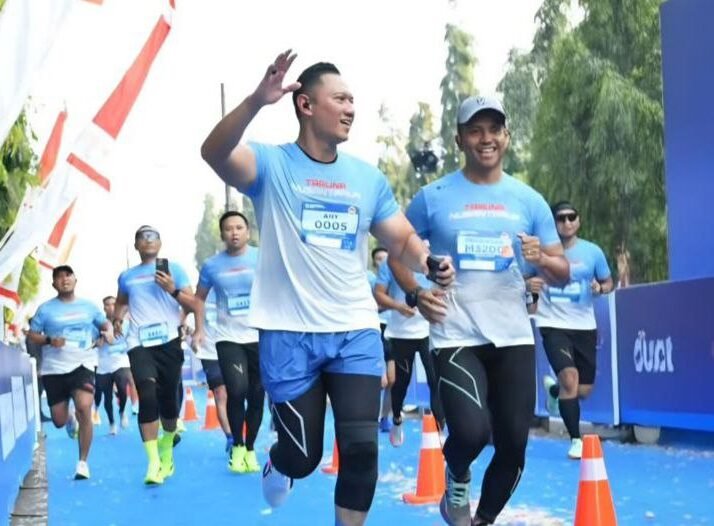 Tak hanya menjadi tamu kehormatan dan melepas start lari, AHY juga turut berlari sejauh 10 kilometer bersama para alumni dan siswa aktif.